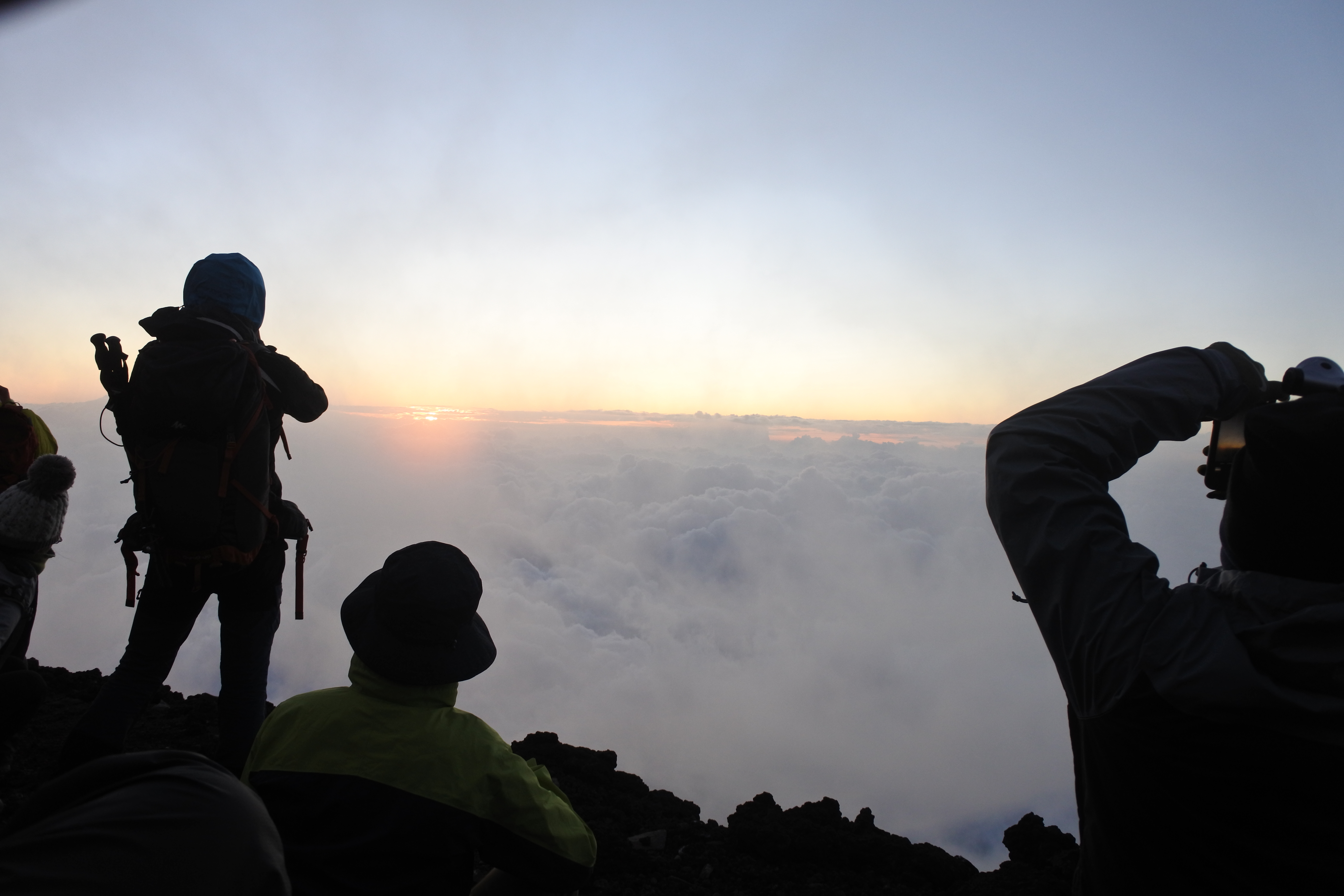 修士の樋渡・前島コンビが企画してくれて、P研みんなで富士登山に挑戦しました!初日はバスで5合目まで登り、8合目の山小屋を目指します。ゆっくり時間をかけて上ったものの、疲労となれない高地で気持ちが悪くなるものもちらほら。翌日、1名は残念ながら山小屋で休むことになりましたが、ご来光に向けて丑三つ時に出発して山頂を目指しました。雲が多くてどうかというコンディションの中、ちょうど雲が避けて幸運にもご来光を拝むことができました。ビバ、太陽神。